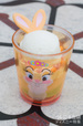 トッピングは、ホイップクリームとアーモンド、真っ赤なラズベリー味の顆粒と、たまごの形のチョコレート。