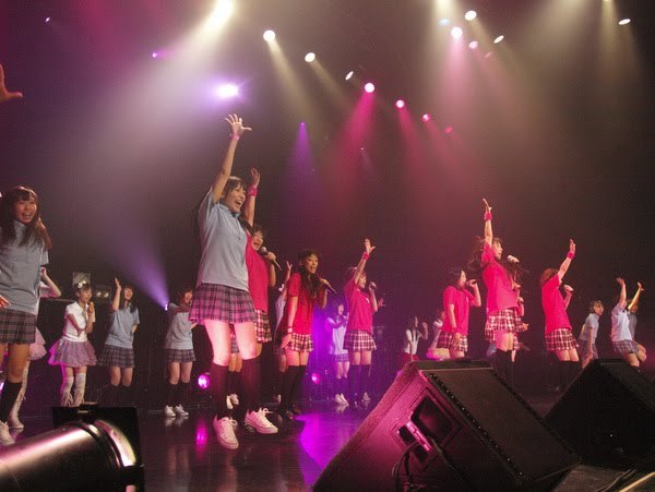 さてさて、お次はおなじみ「とちおとめ25」!今日2ステージ目ですね。こんな大会場でとちおとめちゃんを見るのは初めてなんですが、しーっかりパフォーマンスしてくれてました。このグループのいいところは、パフォーマンスにあんまりムラがないんですよ。音響が悪かったり、初めてのステージだったり、出演メンバーの入れ替えがあったりしてもその時々に出来るパフォーマンスをしっかりやってくれます。同じ曲目をやっても安心して楽しめる。これまでいろんなステージで着実にファンを増やしてる由縁じゃないかなぁ。特に、ハーフ美少女やよいちゃんと、やーっぱりくるみちゃんはパフォーマンスの目を奪う力と表現力がズバ抜けてる!さらにさらに、「フラップガールズスクール」と「ほいっぷ★Girls」を呼び込んで、名曲『いちごパフェ』のスペシャルコラボステージ開始!巨大ステージに何十人も立つ大迫力と、その真ん中でひっぱる13歳の威風堂々くるみちゃん、というのがなんかもうすごい!大団円感すごい!アイドル横丁夏祭り~完~とかそういうテロップ出てきてもいいくらい!や、まだだ、まだ終わらんよ、だったんですが、ともかくこのパフォーマンスは迫力あったなぁ…。フラップガールズスクールちゃん、おぼこくてかわいいデス!