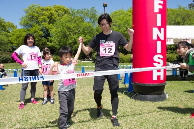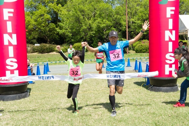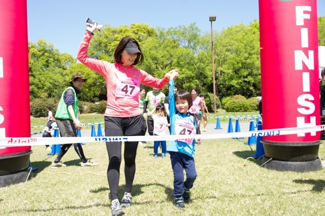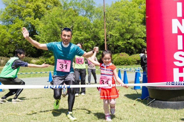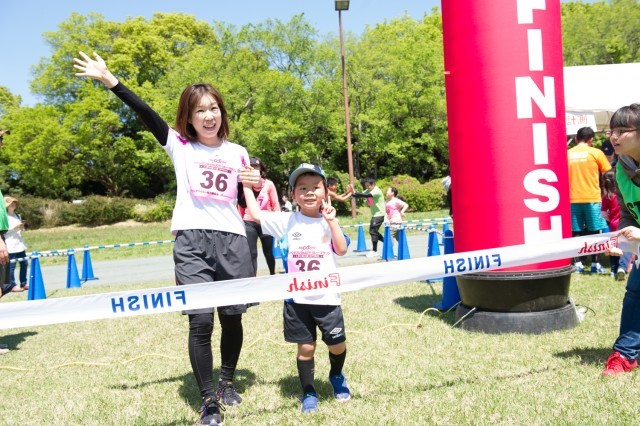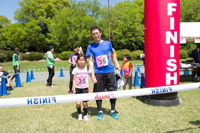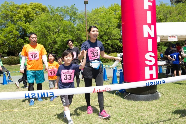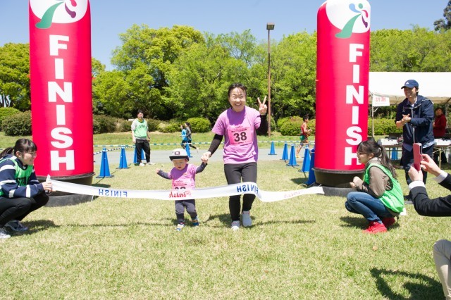 2017年4月23日(日)開催 ファンダフルEnjoy!リレーマラソンin夢の島公園SPRING2017、親子マラソンゴールシーンです。