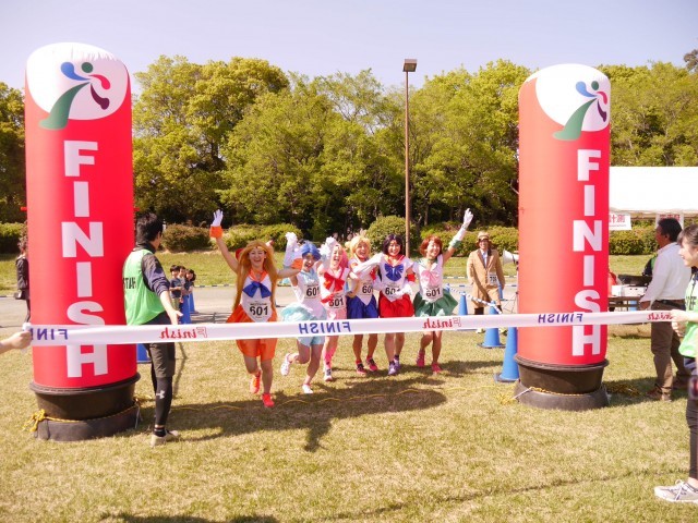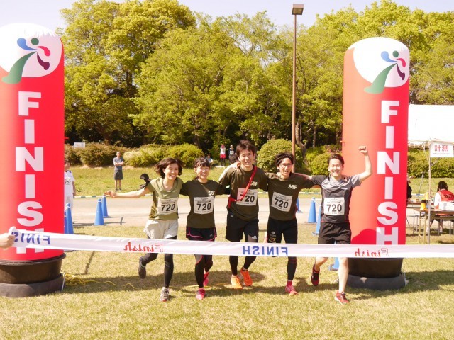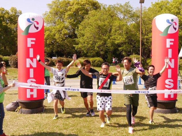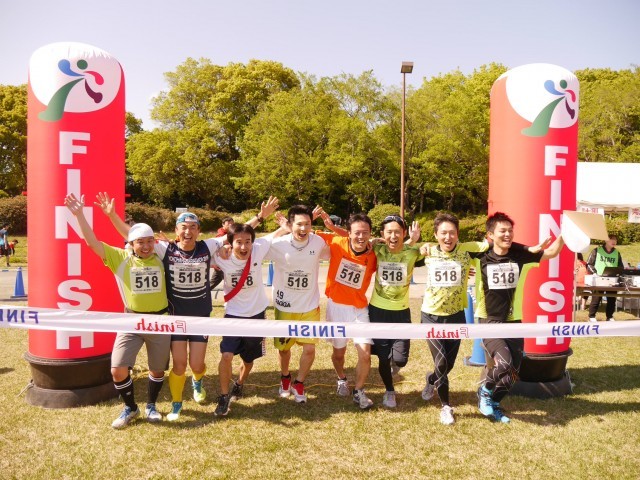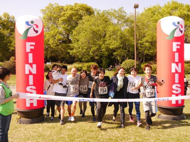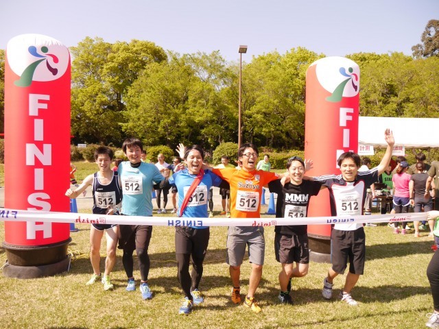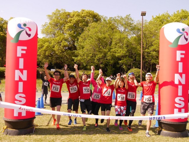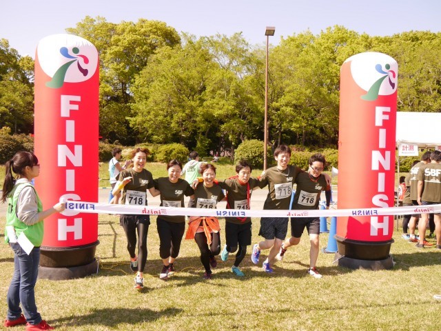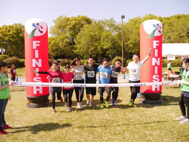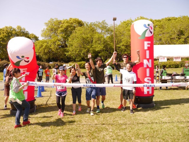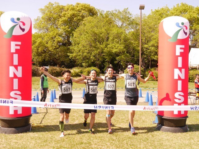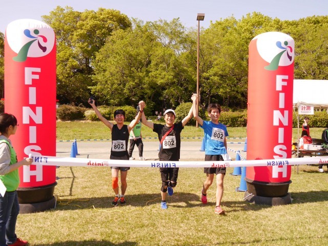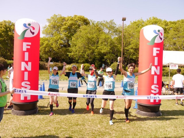 2017年4月23日(日)開催 ファンダフルEnjoy!リレーマラソンin夢の島公園SPRING2017のフルリレーマラソンゴールシーンです。