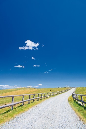 地平線に空と雲 どこまでも続く一本道 美ヶ原高原