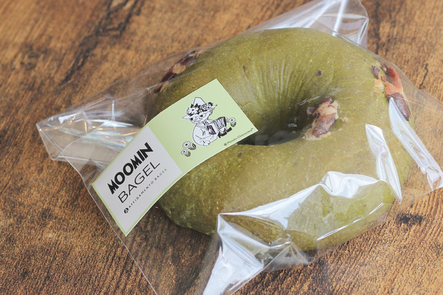 スナフキンのトレードマークである“濃い緑色の広つばの帽子”をイメージしたグリーンのベーグル。『スナフキンの名言集』という本がでるほど、独特の世界観をもっているスナフキンが表現されています。