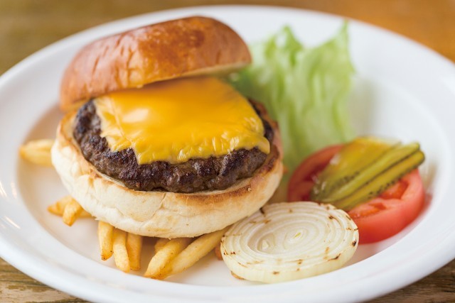 「チーズバーガー」(1200円)。国産牛100%のジューシーな味わい。