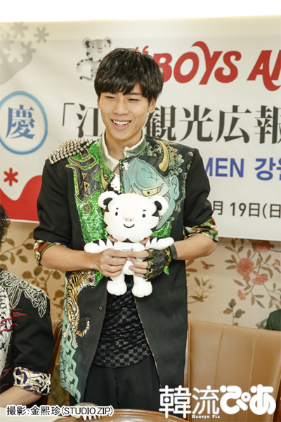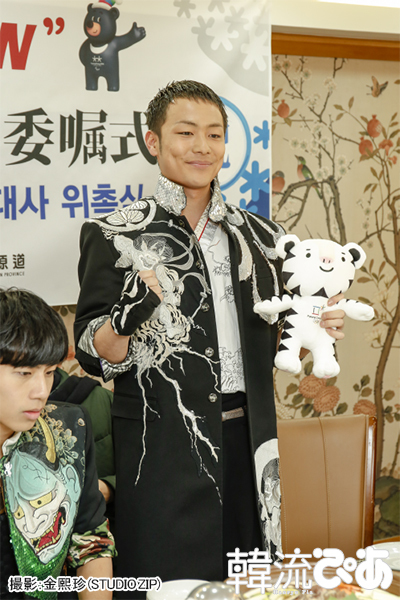「韓国に来るのは初めてだけど、江原道はすごく自然がいっぱいで、海やスキーが楽しめるのがいい!」(平松)、「和製イ・ビョンホンと呼んでください」と言って鍛え抜かれたボディを披露し、爆笑を巻き起こした田中。「これまで何度か韓国に来ていますが江原道は初めて。とても素晴らしいところなので、日本へ帰ったら真っ先に良さを広めたいと思います」(吉原)、「僕のテーマカラーは白で、学ランの刺繍は白い虎。平昌オリンピック公式キャラクターのスホランと一緒!」(勇翔)、「江原道は初めてだけどすっかり気に入っちゃった。ご当地グルメがたくさんあると聞いたから、ぜんぶ食べつくしたいなぁ!」(小林)と、5人ともご満悦。
