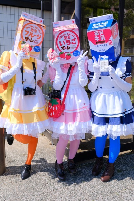 「昭和フルーツ オ・レ」「昭和いちご オ・レ」「毎日牛乳」とドリンクコスプレイヤーも参戦。懐かしさ満載です…!