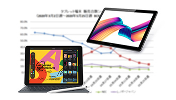 全国の家電量販店やECショップでPOSデータを集計する「BCNランキング」によると、5月のタブレット端末の販売台数は前年同月比159.4%を記録した。4月は、iPadの品薄で94.3%と1年3か月ぶりに前年を割ったが即回復。新型コロナウイス感染拡大に伴う巣篭もり需要で販売を伸ばしている。