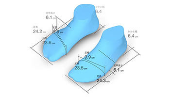 その中でも、一般的に足の大きさを測る指標とされている「足長」で、日本全国の足の平均サイズは、左足が24.3cm、右足が24.2cmであることが分かった。また、「足囲」の平均サイズでは、左足と右足でサイズ差があることが明らかになった。