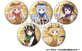 缶バッジのデザインはココア、チノ、リゼ、千夜、シャロの各5種、全10種類が用意されています。