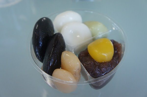 しらたまのもちもち感と備中大納言の潰しあんに軽井沢産紫花豆に北海道産色豆となんとも贅沢です。