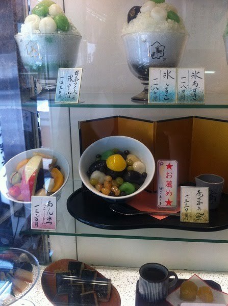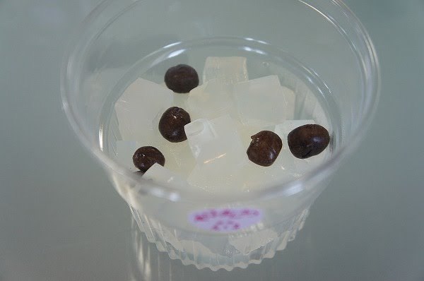 鹿の子あんみつとあんみつの寒天と塩エンドウは共通。