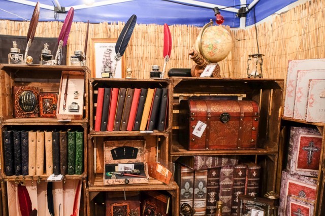 また、ヨーロッパらしいアイテムを販売するブースもありました。海賊が持ちそうな宝の箱や地球儀、船長が使いそうな羽つきのペンなどを展開するお店では、『ONE PIECE』のコスプレイヤーなどが足を止めてチェックされていました。