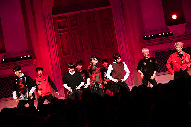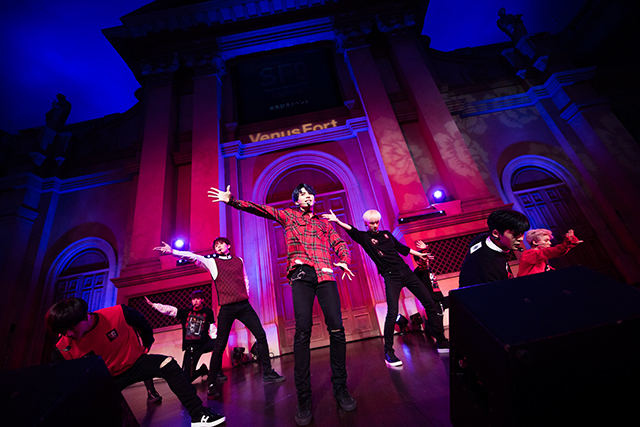 SF9が日本で観覧無料のイベントを実施するのは初めてで、開演前からファンが詰めかけ会場は超満員。メンバーの登場を待ちわびるファンの熱気渦巻く中、ステージセンターから現れた9人は、日本デビュー曲『Fanfare』の日本語バージョンで、躍動感溢れるパフォーマンスを披露した。