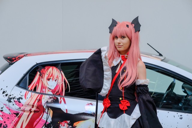 『終わりのセラフ』より、クルル・ツェペシのコスプレイヤーと痛車の合わせ。海外ではまず見れないと思っていた合わせです。