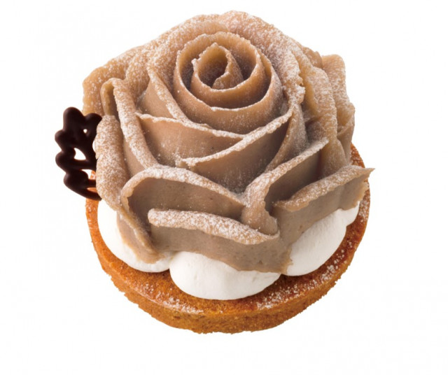 マロンタルトの土台に、世界で愛されるラム酒「オールドジャマイカラム」が香るカスタードクリームを載せ、キャラメルソースをしのばせたマロンのクリームでローズを模った一品。
