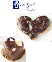 〈シェ・リュイ〉では、“チョコレート”と“アールグレイのブリュレ”がマッチしたハート型のケーキ「ハートのケーキ(エスパス) 480円(税抜)」や、チョコレートがけしたハートのドーナツに、“チョコクランチ”と“イチゴフレーク”をトッピングした「サマーバレンタイン 220円(税抜)」の甘くて可愛いスイーツが登場!