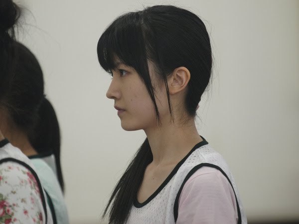 この日の練習は、比較的ダンスなどが安定しているフロント組と、まだかなり練習が必要なバック組とに分かれて行われてまして、フロント組でまず気になったのは、大きな瞳でヘアをアップにしたれいにゃんこと青山玲奈ちゃん(18歳)と、ともかく爆発的なダンスを見せてくれる、前髪ぱっつんのまゆたんこと近藤真由ちゃん(15歳)。