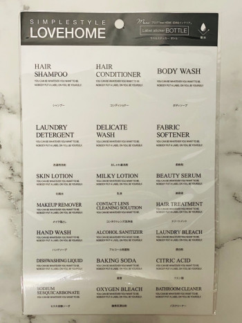 「Can Do」の人気シリーズ、ブログ「love HOME 収納&インテリア」主宰のMariさんとのコラボシリーズのボトル用ラベルステッカー。