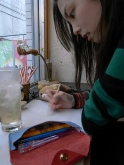 生業は女優なのですが、東京小猫商会で、小物王でもあるノウトミさんに文具を使っているところを発見され、気づいたら文具姫と呼ばれるようになっていました。