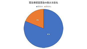 緊急事態宣言の解除後に8割の人が働き方に変化があったと回答
