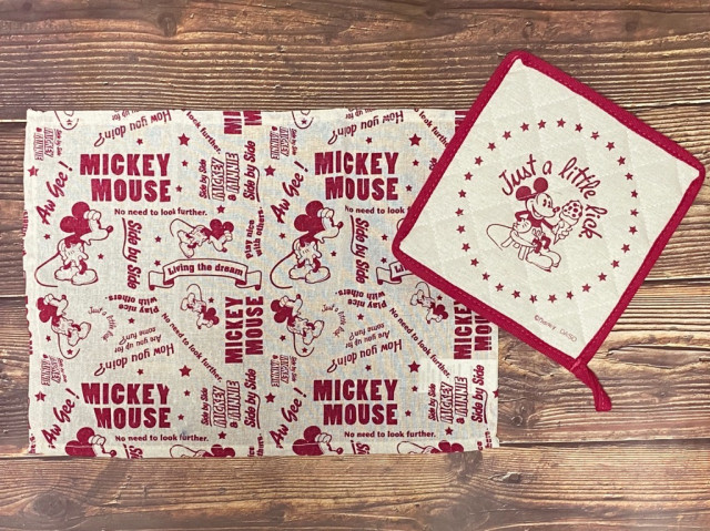 いろいろなサイズのミッキーと、ロゴが散りばめられているかわいいランチョンマットも100円で揃えることができます!