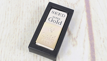 金属スリーブを外すと、個箱や金属スリーブと同様にロゴとSEEDのブランドマーク「壺ガラス」が刻まれている。壺ガラスは“カラスが壺の中の水を飲むために小石で水量を上げた”というイソップの逸話をモチーフにしており、“小さな知恵と努力の積み重ねが重要”としてSEEDの教訓にされているらしい。
