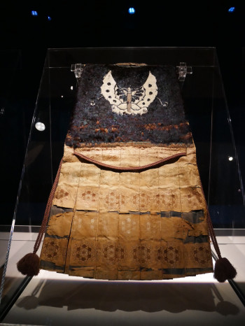 信長・秀吉・家康のそれぞれの個性が光るが陣羽織をはじめ、「つう」の間で流行したという個性的で派手な下着や、火消したちがまとった勇壮な絵柄が刺し子で表された半纏、印籠やタバコ入れなどのおしゃれ小物が並ぶ。