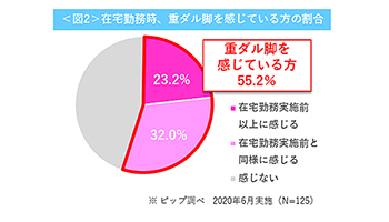 在宅勤務を実施している人の半数以上が脚の重ダルさを感じており、在宅勤務によって、これまで以上に脚の重ダルさを感じるようになった人が23.2%に達している。