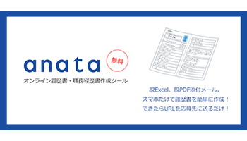 カルテットコミュニケーションズは、コロナ禍での有効求人倍率の低下を受け、「脱Excel・脱PDF添付メール」を掲げ、スマートフォン(スマホ)のみで履歴書や職務経歴書をオンライン上で無料作成できるサイト「anata」を7月2日にローンチした。