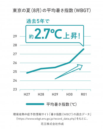 そんな中、人間の熱バランスに影響の大きい「気温」「湿度」「輻射熱」の3つを取り入れ、それを温度の指数で表した「暑さ指数」が近年注目されています。