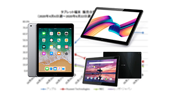 全国の家電量販店やECショップでPOSデータを集計する「BCNランキング」によると、6月におけるタブレット端末の販売台数は前年同月比152.2%だった。外出自粛を受けて159.4%の伸長を記録した5月の成長を維持した。