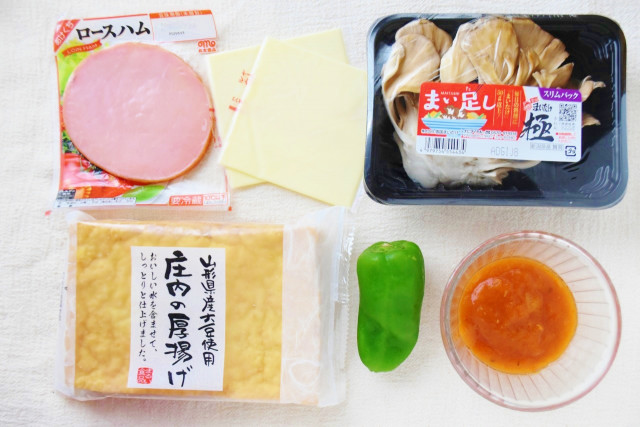 厚揚げをトーストに見立ててピザトーストを作ります。トッピングの材料も低糖質なものを選びました。