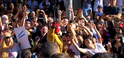 会場に到着した渋谷さんは「凄い熱気です! 盛り上がりが凄いです! 」と興奮気味にコメントすると、大倉さんも「すごく楽しそうですね! 」と会場に集まるファンの熱気に圧倒された様子でした。