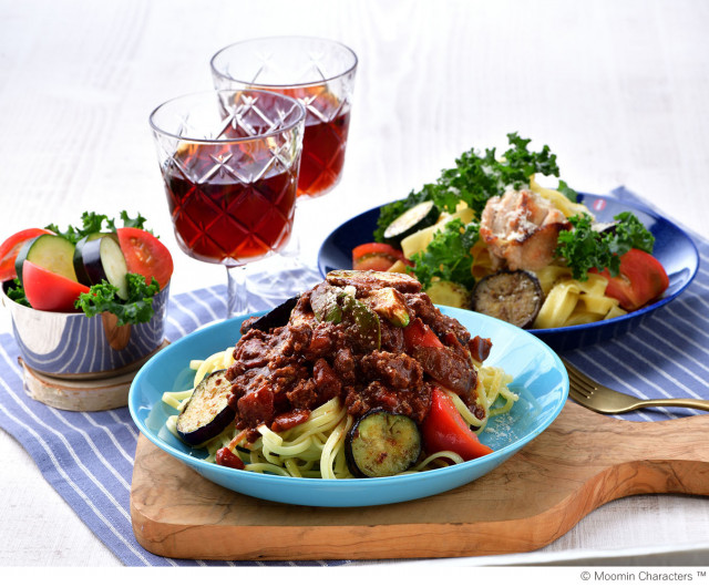 ムーミン型のココットには、野菜たっぷりの美味しい「彩り野菜と塩レモンチキン」、「ごろっとビーフシチュー」、「彩り野菜とトマトのアクアパッツァ」が入り、パンやサラダがセットになっています。