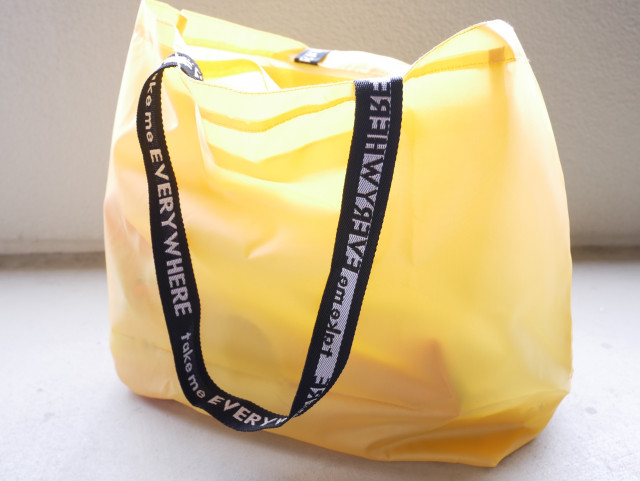 薄手ですが、広げると結構大きいトートバッグで、重さは約7㎏まで耐えられるくらい丈夫なつくりになっています。