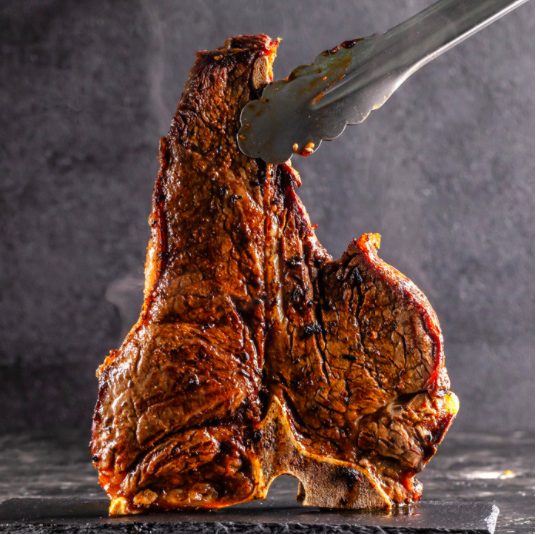 サーロインとヒレ肉を同時に味わえる最高のTボーンステーキ。フライパンやグリルで焼いたり、ローストしても美味しく楽しめます。