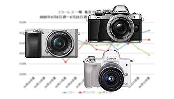 全国の家電量販店やECショップでPOSデータを集計する「BCNランキング」によると、6月のミラーレス一眼デジタルカメラの販売台数は前年比68.8%。減少幅は大きいものの、4月の26.1%、5月の38.0%から急回復を果たした。