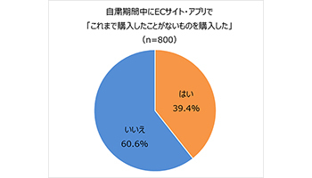 自粛期間中に、ECサイト・アプリで普段購入しないものを買ったかを尋ねたところ、購入したという回答は39.4%に達した。
