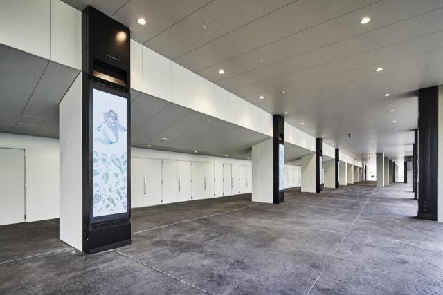 今回、「ぴあアリーナMM」の建設にあたって、お隣の建物と連続したデッキを作ることになったのですが、その際、地上階部分に、通路を支えるための柱の並ぶ空間(ピロティ)ができるため、そこを活かして何かができないかと考えたことがスタートでした。
