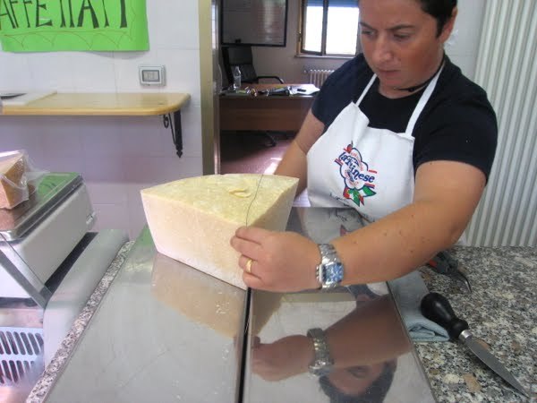 パルマの専門店では熱した電熱線でブロックに切り、真空パックにしてくれました。