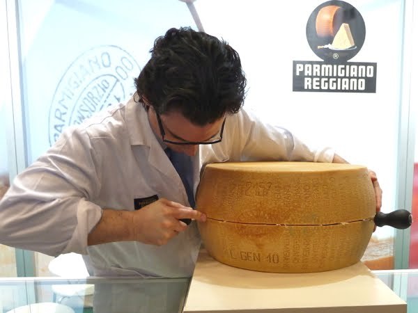 画像は今年のフーデックスのパルミジャーノ・レッジャーノ・チーズ協会のブースで