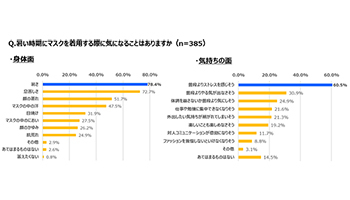 夏のマスク着用で気になることは、身体面が「暑さ」、気持ちの面では「ストレス」