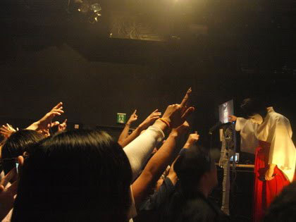 お客さんにコールアンドレスポンスを求めるOmodakaさん! もちろん場内全員ノリノリである。