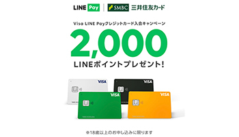 LINE Payは、LINEアプリでアクセスできるキャンペーンページから申し込むとLINEポイントを2000ポイントプレゼントする「Visa LINE Payクレジットカード入会キャンペーン」を実施している。対象申込期間は2020年7月20日~31日23時59分。