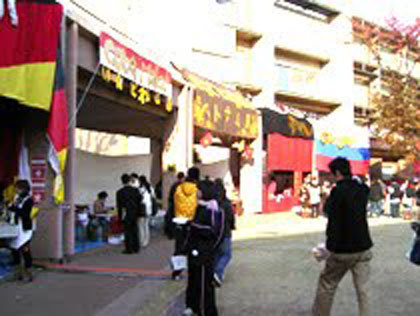 西武多摩川線多磨駅、下車。学校までは5分の道のりだ。学内に入ると、円形の広場にみっしり、各国料理の屋台が並んでいる。