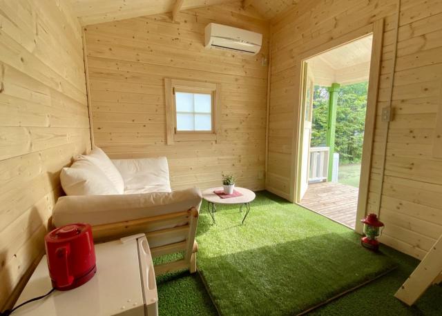 コテージには、ゆっくりとくつろげるロフトと芝生ラグが敷いてあるほか、寝具、エアコン、冷蔵庫、無線Wi-Fiもあるので快適に滞在できます。3密を避けた自由な滞在を楽しめそうです。