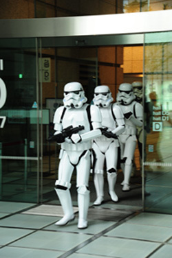 “501stリージョン”は、もともとアメリカで1997年に結成された「スター・ウォーズ」のファン団体だが、なぜか全員がストームトルーパーやダース・ベイダー、ボバ・フェットといった悪役キャラのコスチュームを所有していることが特徴。現在、日本部隊には57人が在籍しており、厳密な基準によって承認されたコスチュームに身を包んで、毎週のように全国各地に出動しているという。