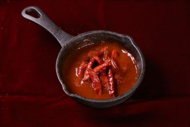 世界一辛いとうがらしとして認定され、最大200万スコヴィル値※を誇る死神級の辛さの「キャロライナ・リーパーとうがらし(キャロライナの死神の意味)」と、タバスコの200倍辛い「ブートジョロキアとうがらし」といったとうがらしや、青とうがらしのハラペーニョ等、5種類のとうがらしをかけあわせて作った特製ソースが特徴の本メニュー。