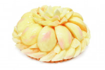 桃とマンゴーをあわせ、相性の良いクリームチーズをベースにして飾られています。フルーツとクリームチーズのコンビネーションが楽しめます。