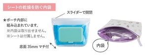 ポーチの中にスライダー付きの内袋が付いていて、ウェットシートを乾燥させずに持ち歩くことができます。