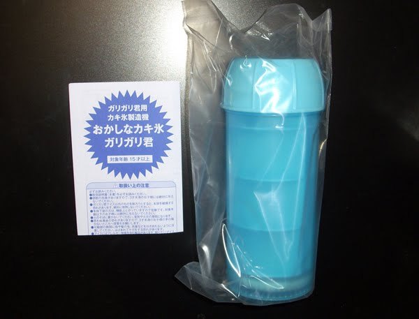 さっそくガリガリ君からいきます。内容は水筒のような本体と、説明書の2つだけ。まあ、おもちゃだし、説明書を読む必要はないよね。